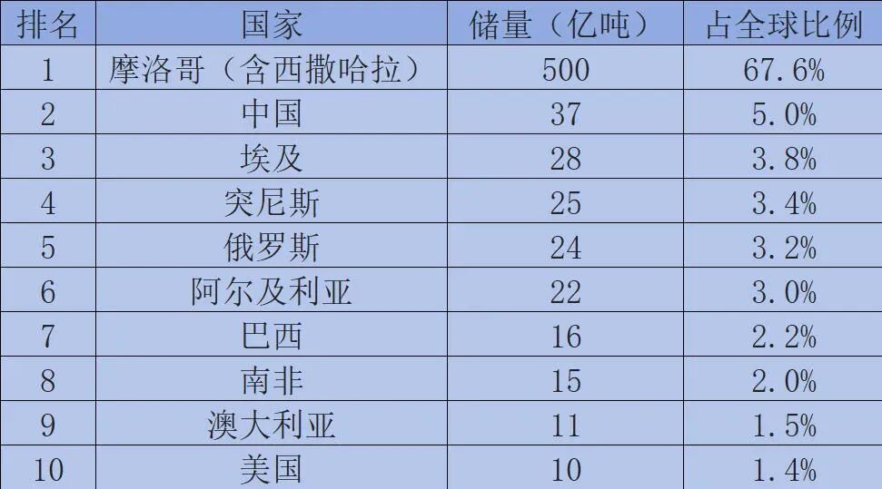 但也只占全球储量的5%,与排名第一的摩洛哥相比,差距甚大。
