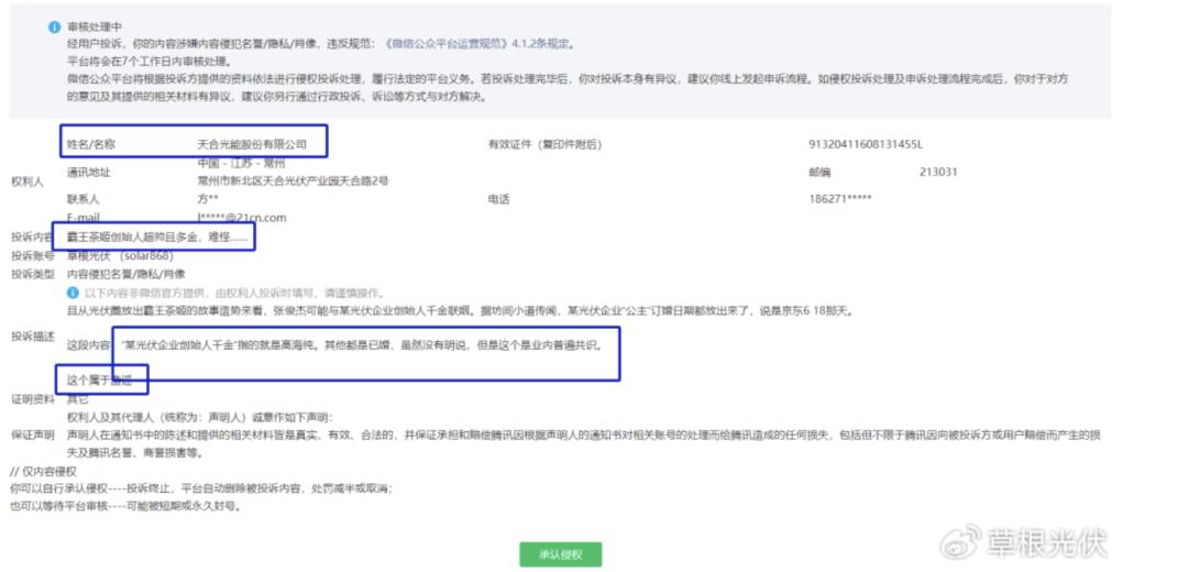 值得注意的,这篇文章却引来了天合光能的投诉。