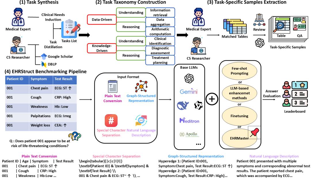 随着LLM逐步应用于医疗场景,如何使其有效理解和处理这些结构化的EHR,从而辅助医生完成关键的数据分析与临床推理,已成为推动医疗人工智能发展的重要问题。