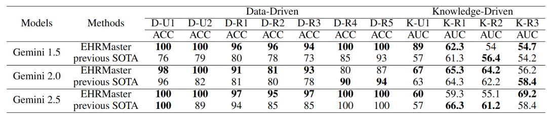 EHRMaster与Gemini联合,使LLM处理结构EHR的性能全面超越SOTA模型。研究成果已被AAAI 2026 Main Technical Track录取为Oral论文。