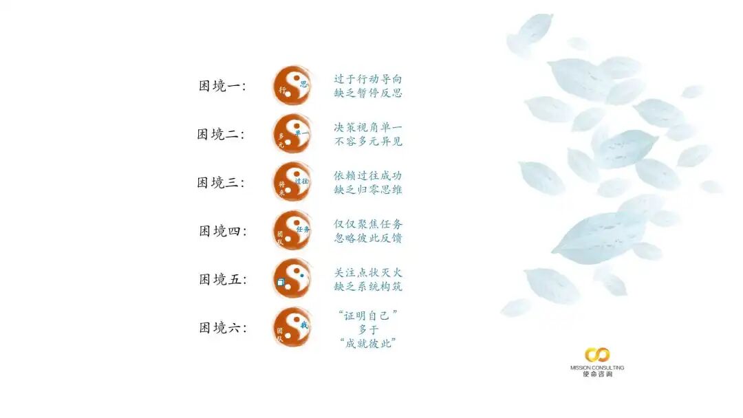 在战略对话第一步“定义问题”,最重要的就是要打破高管团队“过于行动导向,缺乏暂停反思”这个困境,让大家慢下来,进行深度的个人觉察、团队觉察和组织觉察!