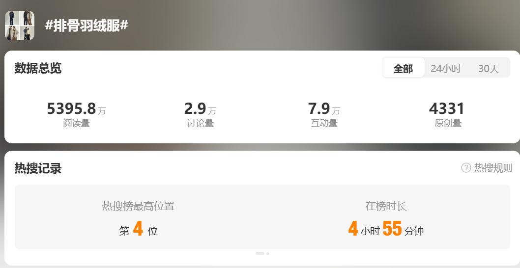 今年入冬以来,与排骨羽绒服相关的话题已多次出现在热搜榜上,如#排骨羽绒服爆火有商家卖出千件# #我奶同款排骨羽绒服怎么又火了#等,持续引发网友关注。