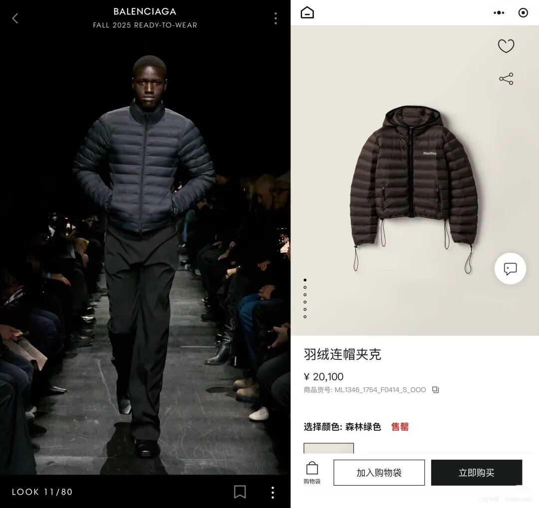 这波风潮甚至推动了奢侈品牌的跟进。Miu Miu、巴黎世家等高端品牌迅速推出高价款式。至此,排骨羽绒服彻底摆脱了“大爷大妈早市标配”的形象,成功站上国际时尚舞台。