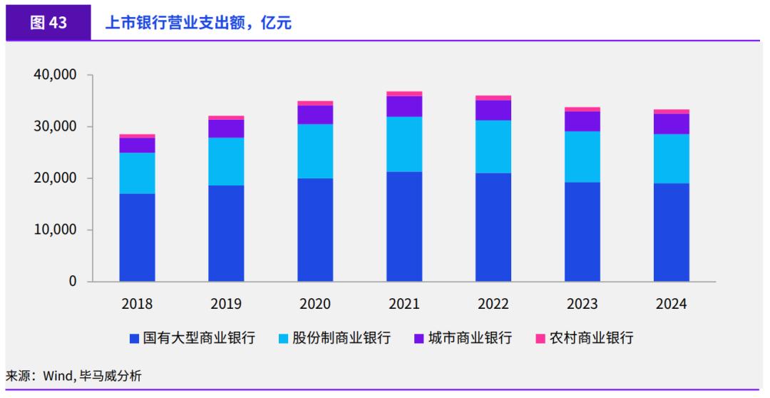 业务萎缩是一方面,运营成本和监管要求还在不断上涨。别看网点不忙,但一年运营成本至少要 200 万到 500 万,加上 10 到 15 个员工的工资,整体下来差不多要花 1000 万。中国金融工会 2024 年底的报告数据显示,一个标准柜台窗口一年就要 52 万元,包括人力、设备、安全等各种开销。从行业整体看,2024 年上市银行营业支出 3.3 万亿元,其中管理费用 1.8 万亿元,占到了 54.7%。与此同时,监管要求越来越细,客户身份核实、流程规范、投诉处理、网点环境,每一项都有明文规定。网点主管也常吐槽: