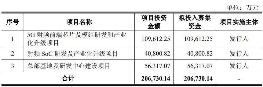 招股书显示,昂瑞微此次IPO拟募集资金约20.67亿元用于5G射频前端芯片及模组研发和产业化升级项目、射频SoC研发及产业化升级项目和总部基地及研发中心建设项目的建设,有助于进一步提高公司自主创新能力,增强公司技术储备,完善产品布局,以技术升级提升公司产品的核心竞争力。