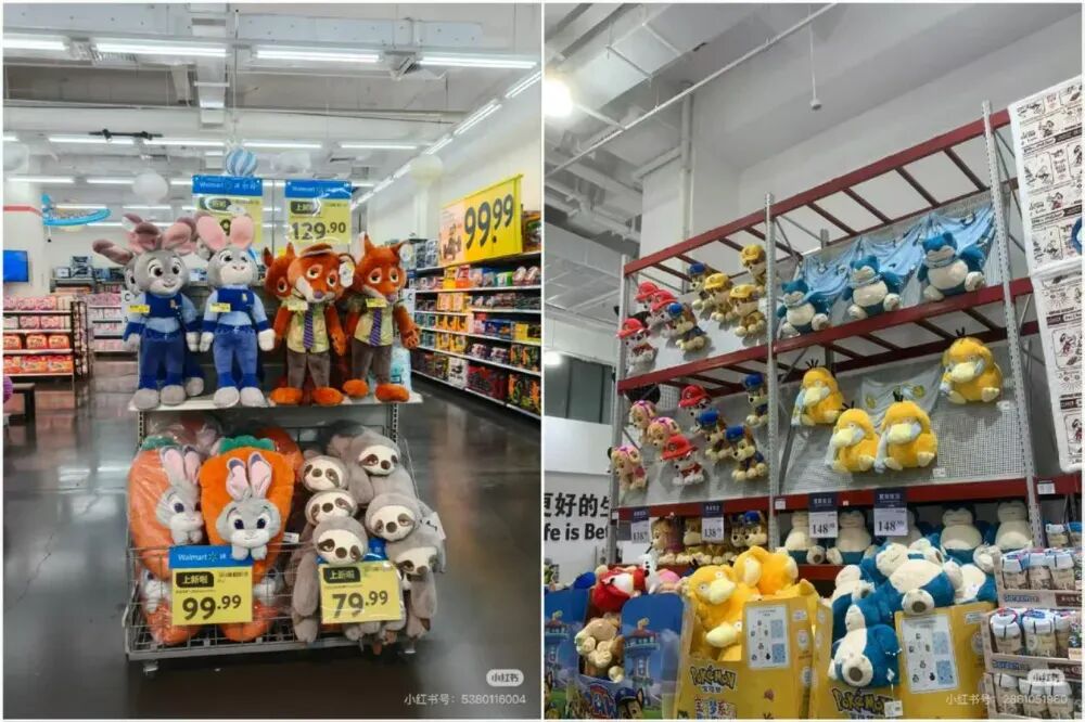 左图为沃尔玛玩偶区、右图为山姆玩偶区,图片来源:小红书@桃气椰椰、小红书@橘子