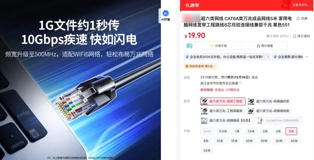 你可能好奇了,我这会儿上某东搜条超六类的万兆(10Gbps)网线也就十几块钱,咋能不够用呢?