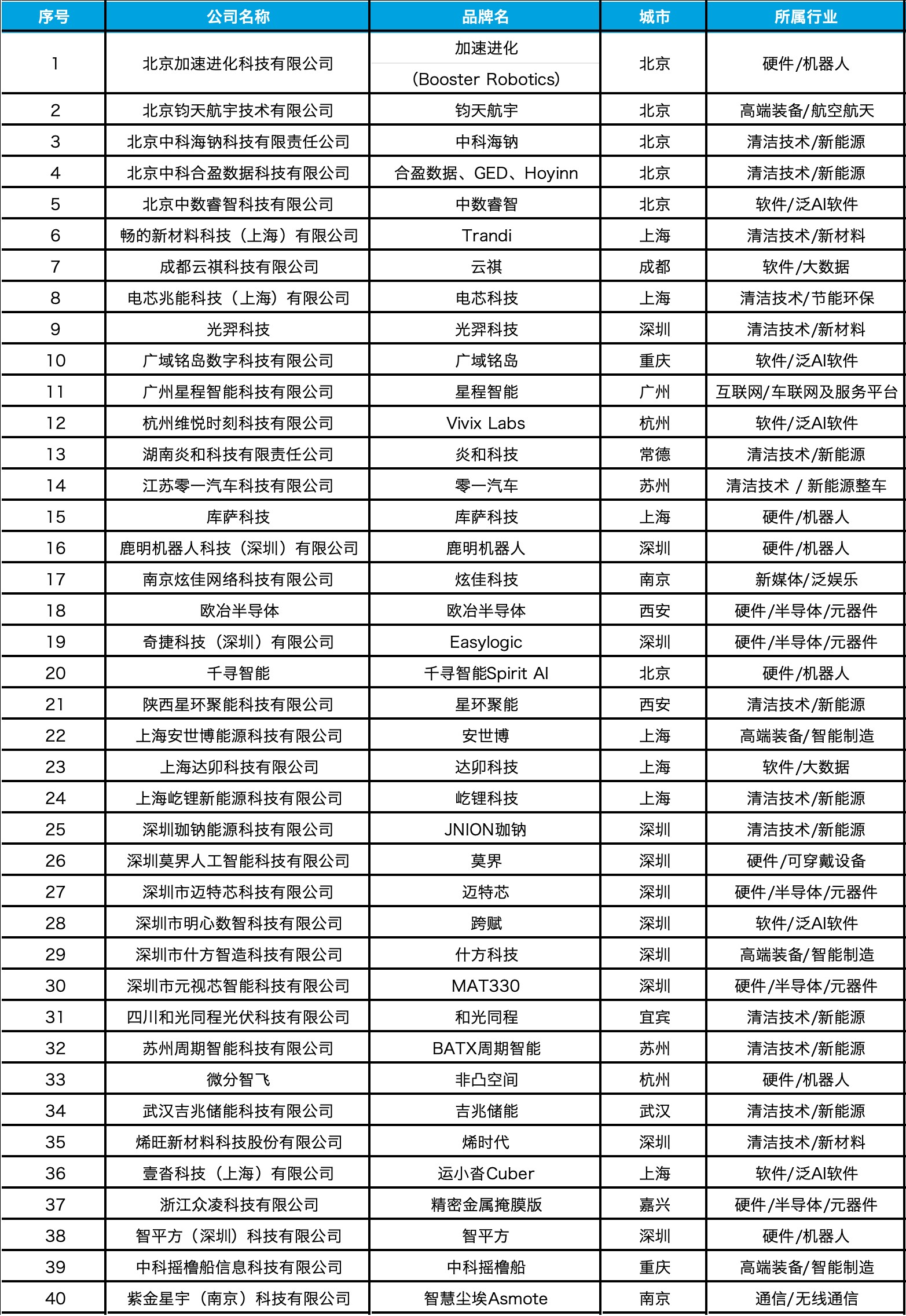 2025中国明日之星榜单 (排名不分先后,按照企业中文名称拼音排序):