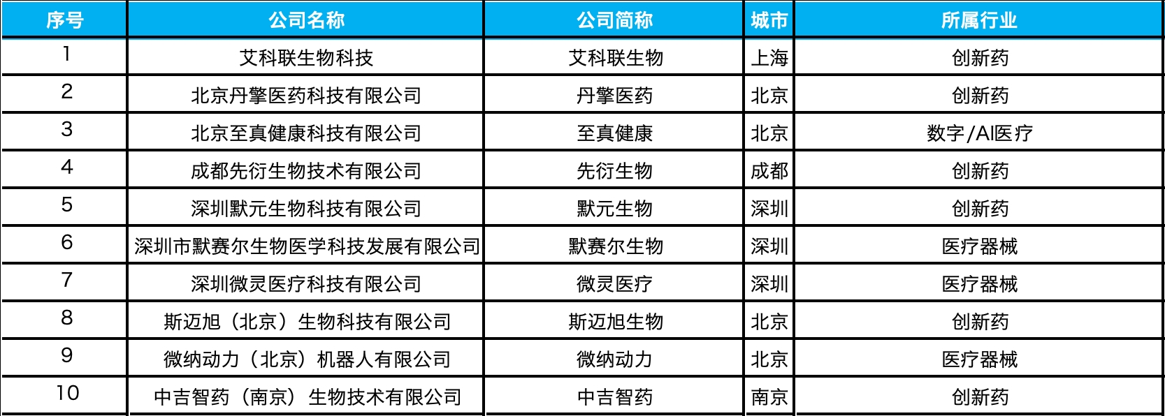 2025德勤中国医药健康种子奖榜单(排名不分先后,榜单以公司首字母排序):