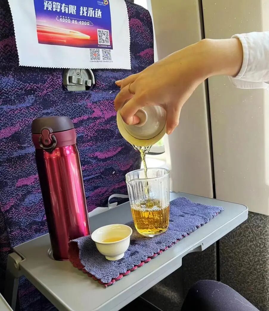 往小了算,高铁是绝佳的茶席场景,离厕所还近, 慢悠悠喝几泡茶,结束一段旅程,完美。