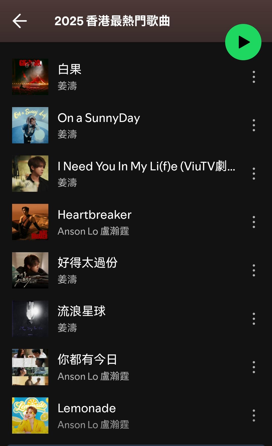 根据Spotify发布的香港地区最受欢迎歌手及组合、最热门歌曲两个榜单显示,依然是地域化十分明显的姜涛、MC张天赋占据榜单多位、K-Pop艺人上榜多,但怀旧金曲甚至跨度来到90年代,包括张学友《等你等到我心痛》王菲《梦中人》等相对罕见的怀旧金曲也悉数上榜。