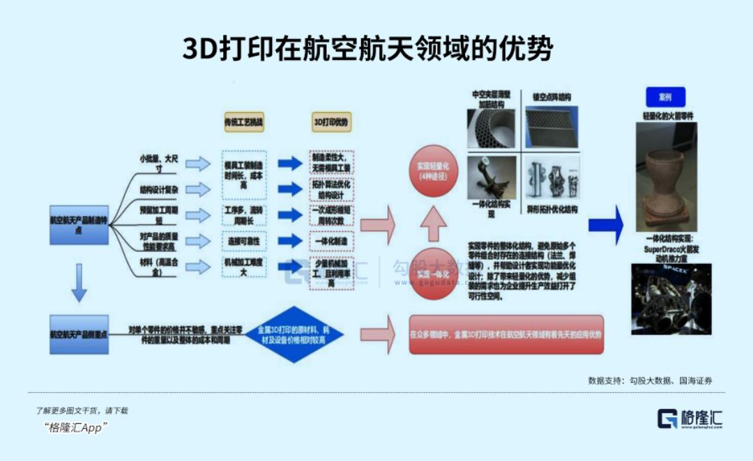 SpaceX的猛禽发动机,85%的构件都是3D打印的;国内朱雀三号火箭的核心部件由铂力特制造,还成功进入轨道,单星制造成本降低了15万元,一枚火箭就能带动1000-1500万元的设备需求。