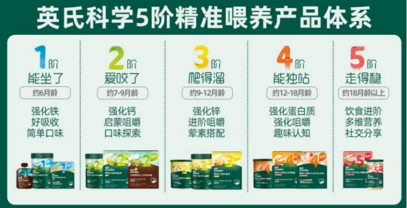 英氏控股致力于婴幼儿辅食添加的科学性、合理性研究,以婴幼儿成长的五个关键节点 “坐”“咬”“爬”“站”“走”作为辅食分阶变化的标志,指导消费者科学育儿。