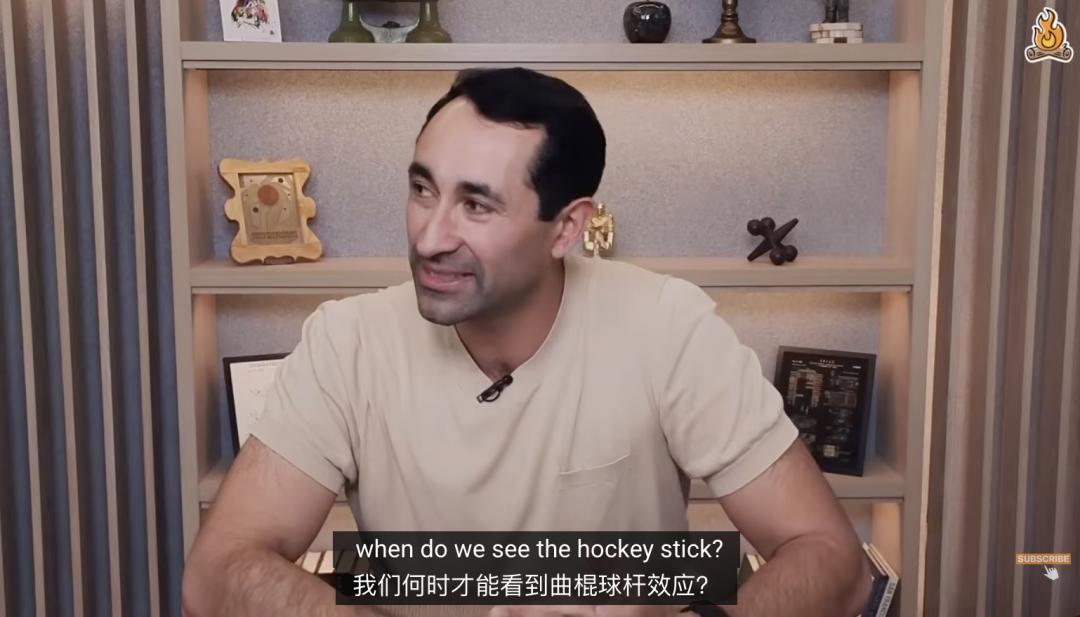 「从明年开始,我们会看到一批早期采用者的生产力率先出现曲棍球杆式提升;而在接下来的几年里,会有越来越多的大公司也实现类似的生产力飞跃」。