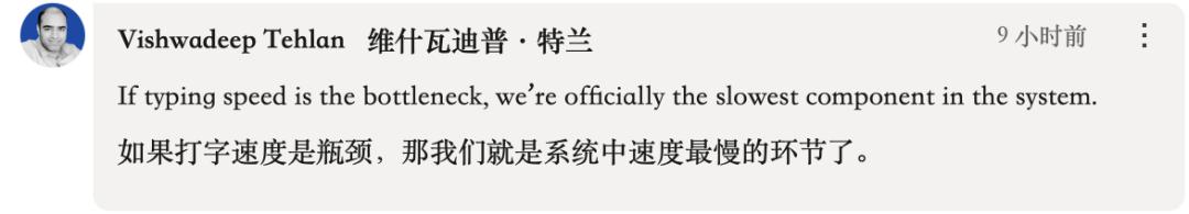 这迫使我们在通过AGI的道路上,除了考虑打造更强的模型之外,还要考虑人类能力瓶颈(输入速度)这一隐形障碍,也推动我们重新审视人机关系。