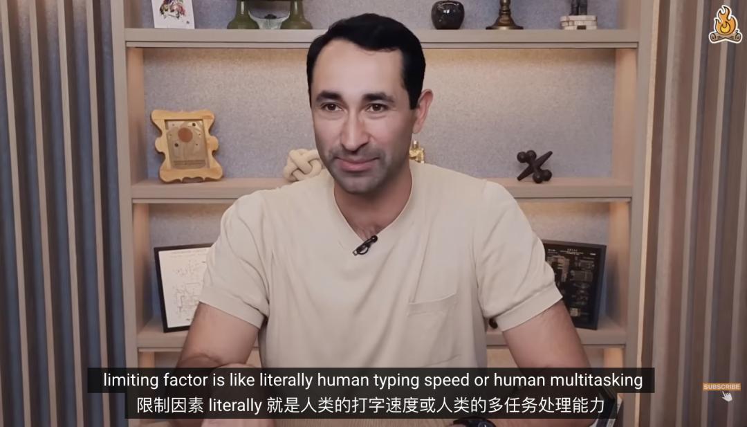 他在近日《Lenny's Podcast》播客中表示,人类的打字速度正在拖慢通往AGI的进展。