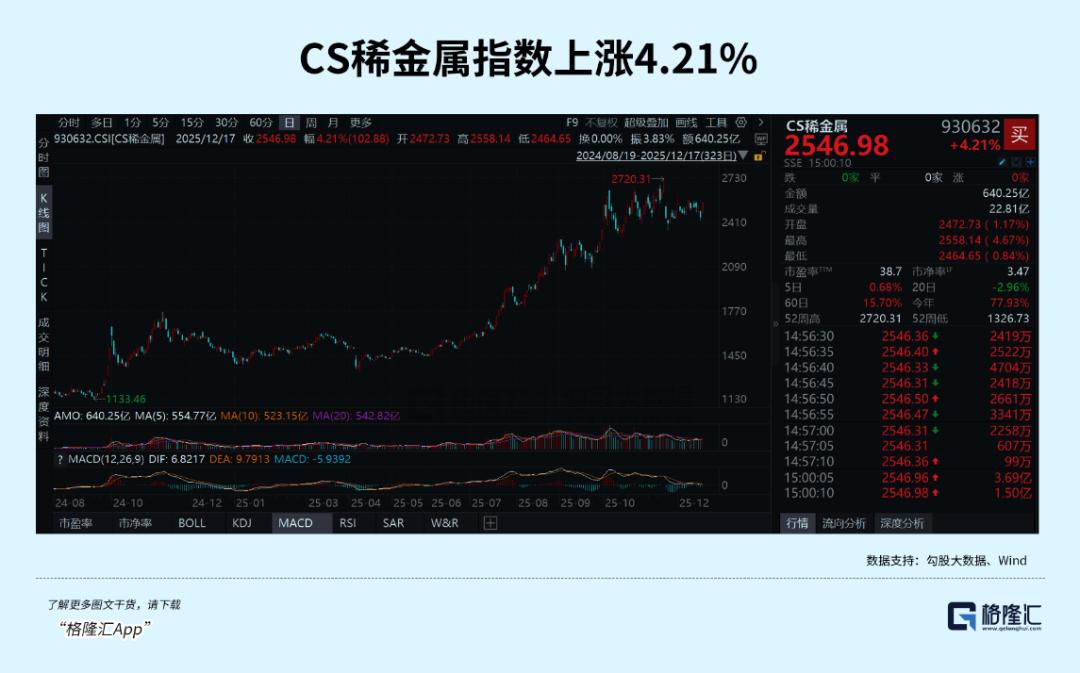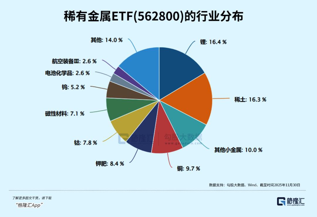 稀有金属ETF(562800)跟踪的,全市场锂矿概念含量最高(占比达到41.59%)的指数--CS稀金属指数,今天强势领涨,上涨幅度达到4.21%。
