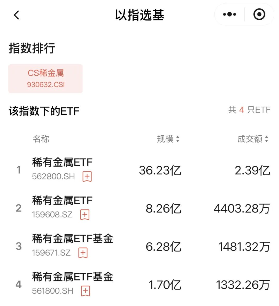 目前跟踪CS稀金属指数有四只ETF,其中嘉实基金旗下的稀有金属ETF(562800)规模、流动性双双位居前列,是同类唯一日均成交额破1亿元的ETF。