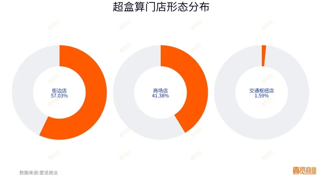 在门店形态上,超盒算确立了街边店为主、商场店为辅的模型,追求极致的运营效率与客户便利性。377家门店中,街边店有215家,占比57.03%;商场店156家,占比41.38%;还有6家位于交通枢纽,占比1.59%.