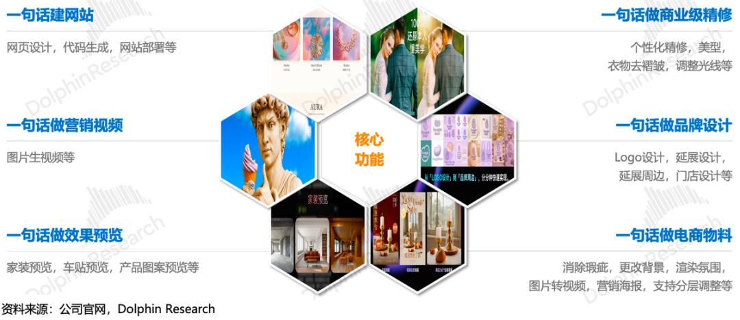 To C端公司进一步升级美图秀秀、美颜相机的智能化功能;to B端推出美图设计室、开拍等轻生产力应用。商业模式也实现转型,成为最新一波尝到AI甜头的垂类应用:C端通过会员订阅服务变现,B端面向企业提供设计SaaS服务,似乎开始步入正轨。