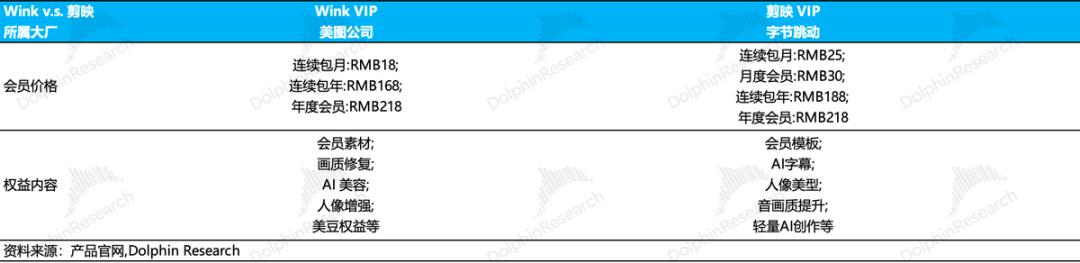 市场份额来看,在中国视频工具赛道排名第二(市占率约10%,剪映60%+),与剪映功能上实现差异化互补。Wink 的核心价值在于其 AI 画质修复、超分处理 和视频级人像美容功能,有效解决了用户对低画质视频和人像美化的需求。鉴于移动端影像工具具有“并存且不互斥”的使用特征,从而能够在市场中立足。