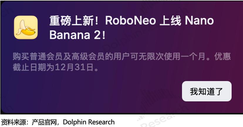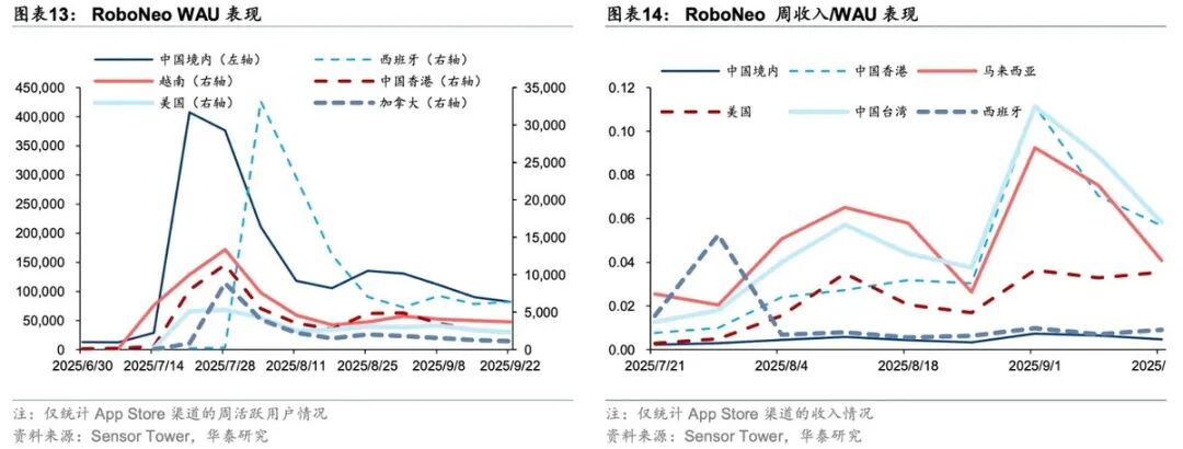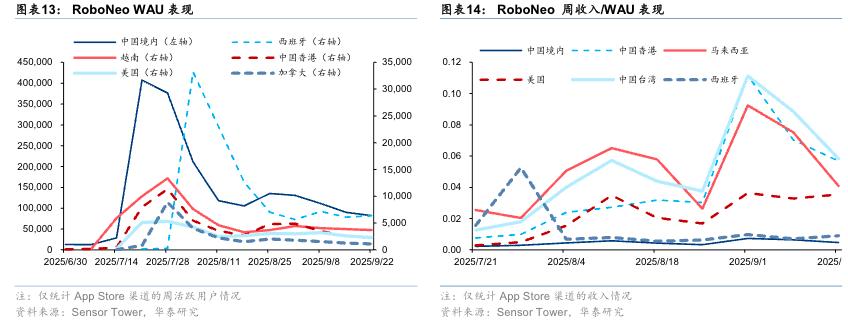 2、RoboNeo的变现情况,境内外表现并不完全相同,本质上还是与用户对生产工具的付费意愿和当地竞争情况有关。内地市场虽没有Nano Banana的普遍竞争,但自身付费意愿低,且类似的同行产品众多,因此变现力和用户规模趋势一样相当低迷。