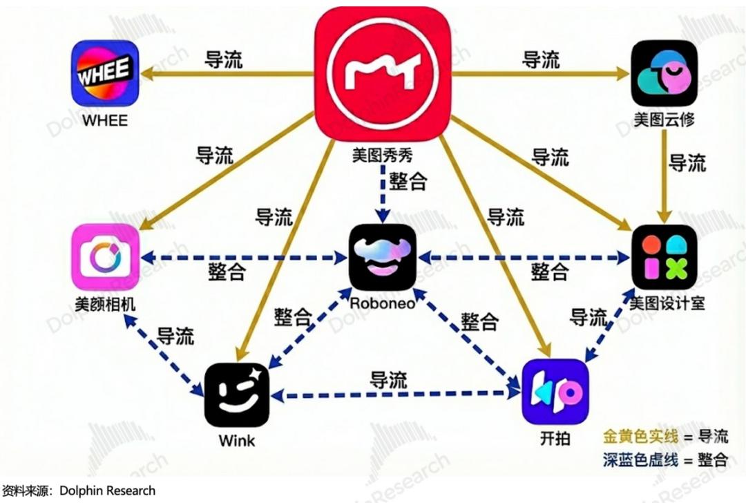 这种体系在产品矩阵的商业模式下,往往具备一定的用户生命周期延伸能力。当单一AI功能(如AI雪景)通过社交裂变吸引新用户后,矩阵内多元化的产品组合能有效承接不同维度的需求,将单点爆发的“流量”转化为长期留存的“用户”,但同时也没有失去整体生态的统一标签入口(对应用户心智),从而在竞争中保持用户粘性。