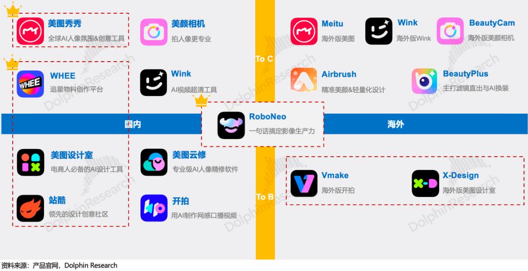 从功能上看,RoboNeo 集成了美图设计室、美图秀秀、WHEE 等核心能力,不过这种高度重叠引发了市场对于产品矩阵内部替代效应的担忧。
