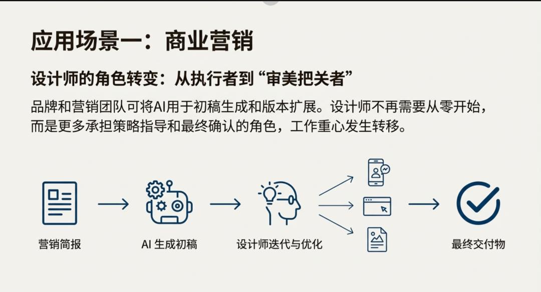 在商业场景中,品牌和营销团队已经开始将 AI 图像用于初稿生成和版本扩展。设计师不再需要从零开始完成每一张物料,而是更多承担审美把关和最终确认的角色。这种变化并不意味着设计价值的下降,而是工作重心的转移。