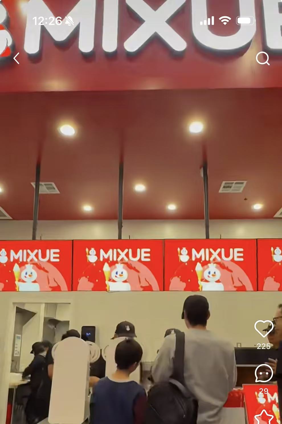 图片来自网友发布的蜜雪冰城洛杉矶店打卡视频截图