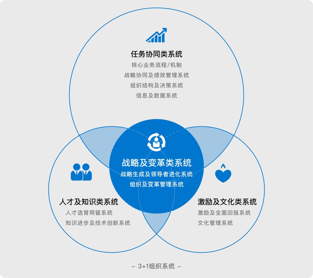 - 战略及变革类系统包括:战略生成及领导者进化系统;组织及变革管理系统。