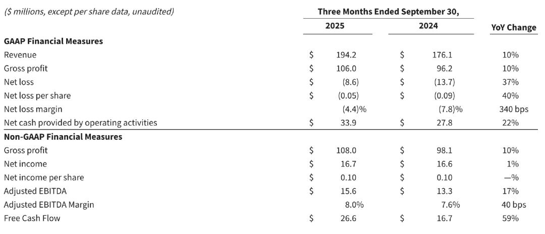 根据财报,Coursera 2025年第三季度营收1.942亿美元,同比增长10%;净亏损860万美元,同比亏损缩窄37%。