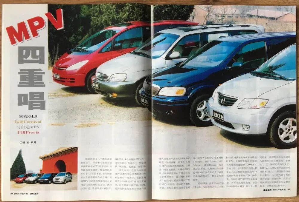 在一本十几年前出版的《汽车之友》杂志中,曾刊载过当时MPV市场上的四大主流车型横评,其中就包括别克GL8、丰田大霸王、起亚嘉华、马自达MPV