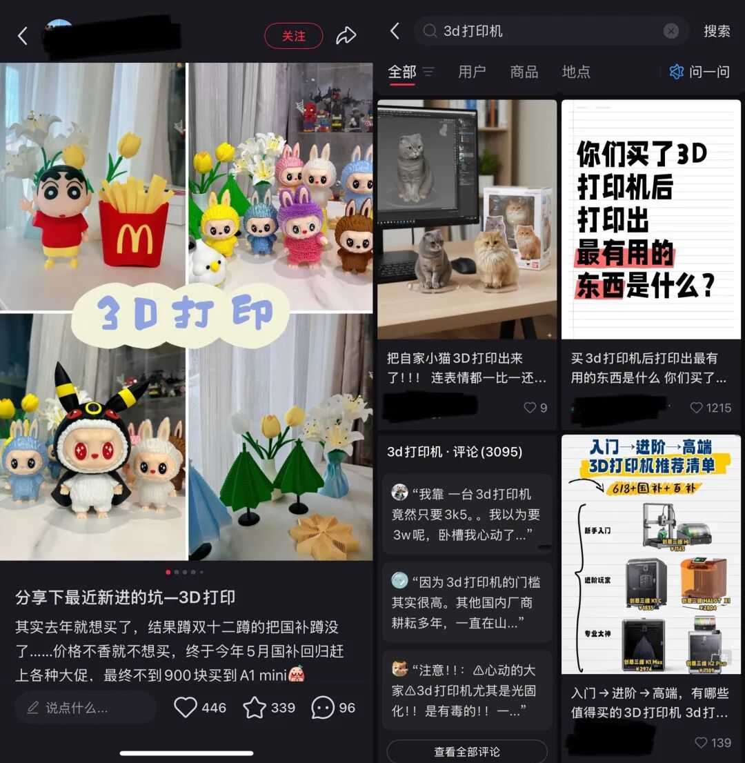 对于一个消费新品类来说,价格和普及率往往成反比。2025 年上半年,3D打印入门级机型主流价格从2000元下探至1500元,拓竹A1 mini甚至通过双十一预售做到789元,较三年前降幅超60%。