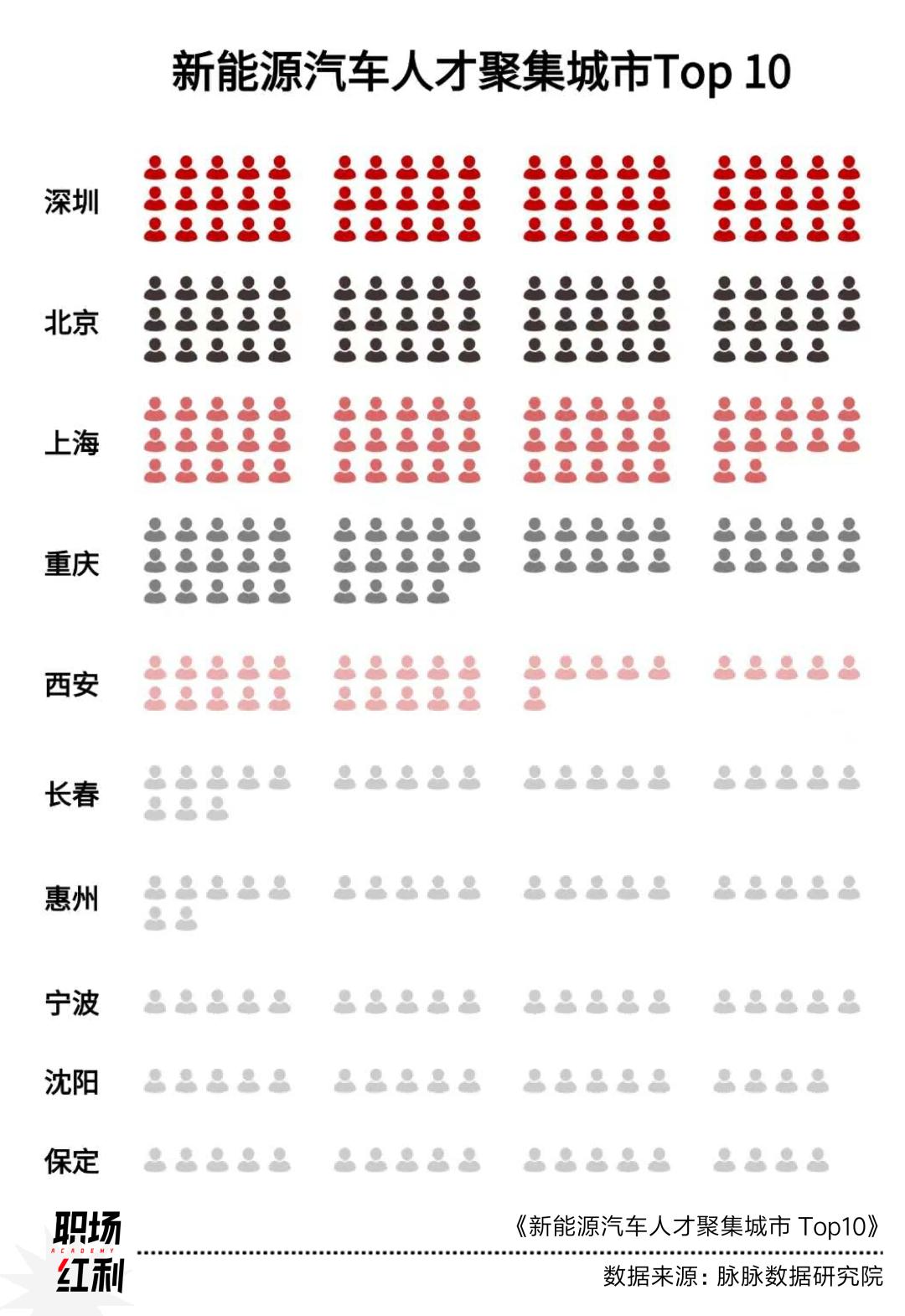 尽管挑战加剧,产业扩张仍驱动人才向核心城市集聚。深圳、上海、重庆依托电池、整车、材料全链条布局,已成为新能源汽车研发、制造、贸易人才的三大高地。