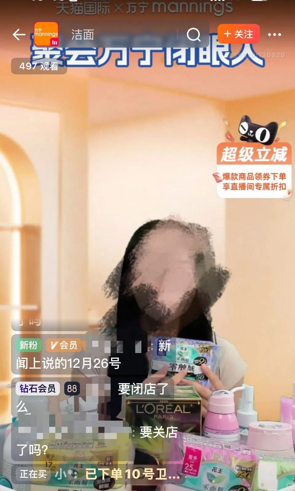 线上渠道的萧条也是一样。在疑似录播的天猫“万宁官方旗舰店”直播间,不时有消费者问及关店事宜,未能获得回应。有意思报告咨询线上旗舰店客服,对方亦表示不清楚关店的情况,但是会保障延续售后。