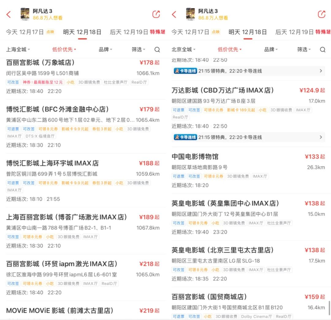 IMAX 3D票价可达219元