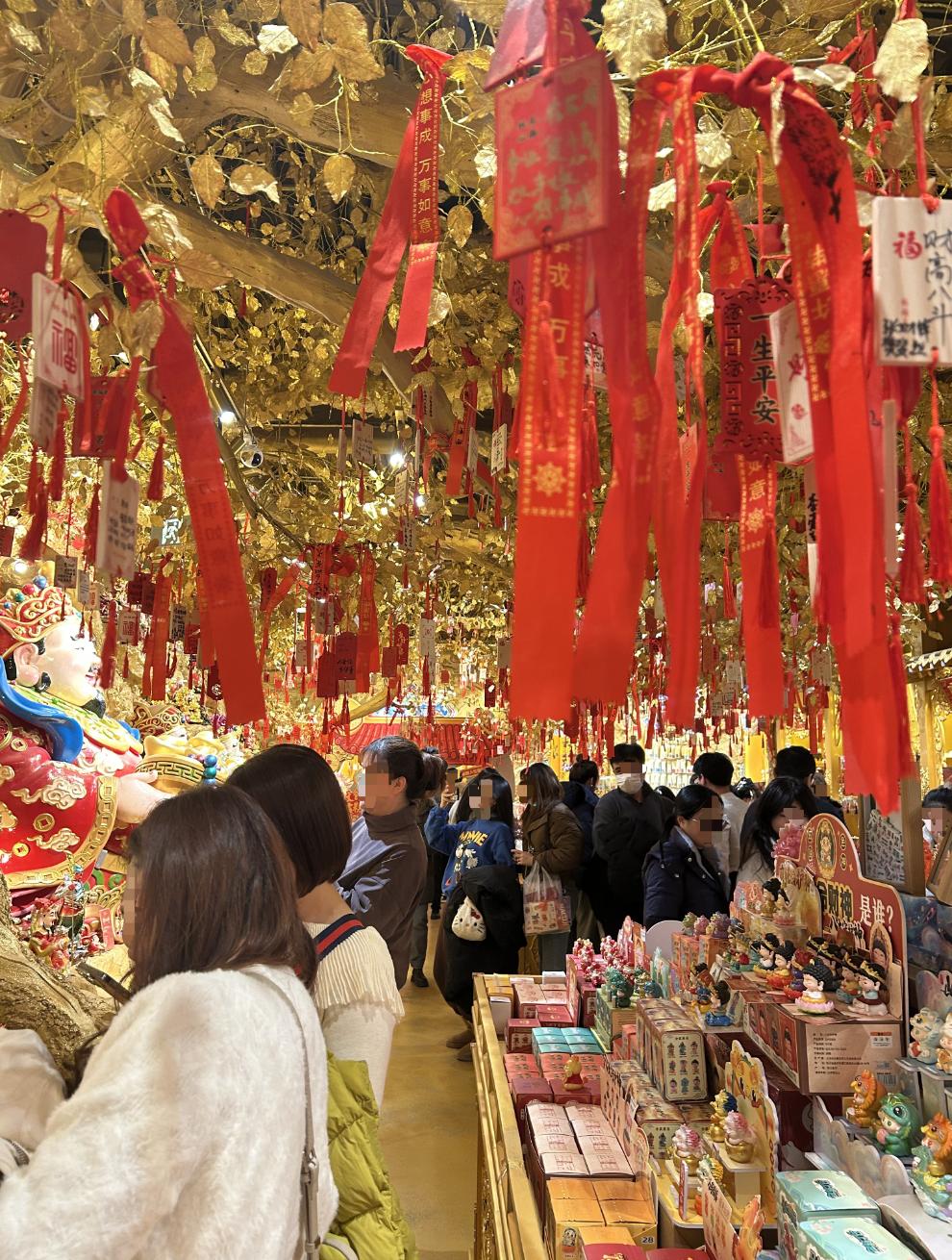 求好运的年轻人,挤满了购物中心的财神殿