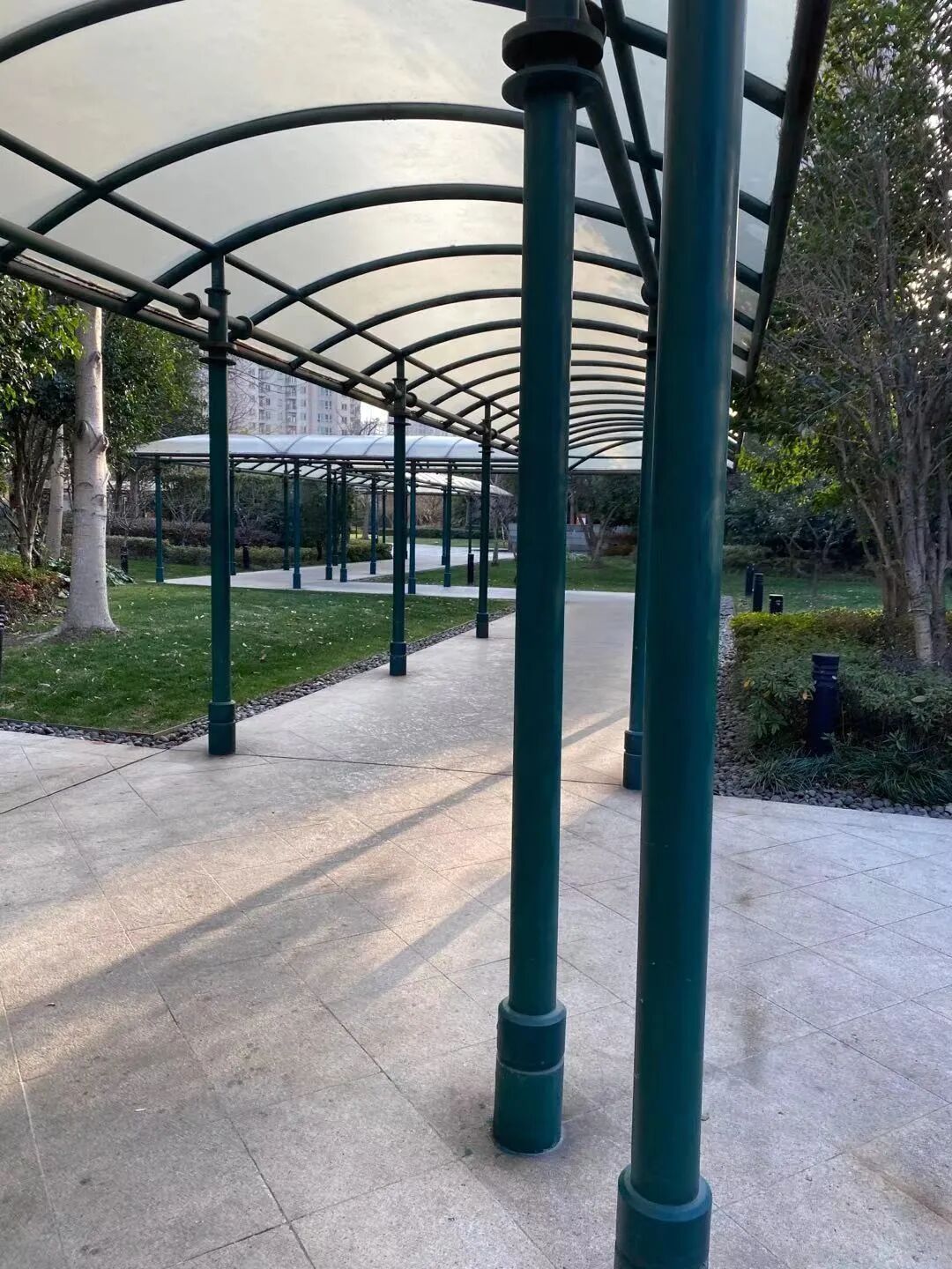 楼下的大堂接着比较长的风雨连廊,这些风雨连廊不是单独存在的,而是和其他楼栋的也连接起来,并且还衔接到了外部的车道上。风雨连廊的设计可以让人在下面站着聊聊天。就像我说的,遇到邻居了,在楼下找个地儿聊聊天,既不会堵着路,也不用在意是否会受到天气的影响,彼此之间回家也非常方便。
