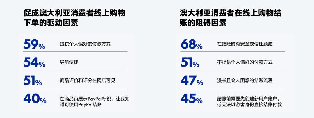 在流量与选品之外,支付体验也是促成交易的关键环节。研究发现,59%的澳大利亚消费者认为,提供个人偏好的付款方式是促使他们线上购物下单的最主要因素。