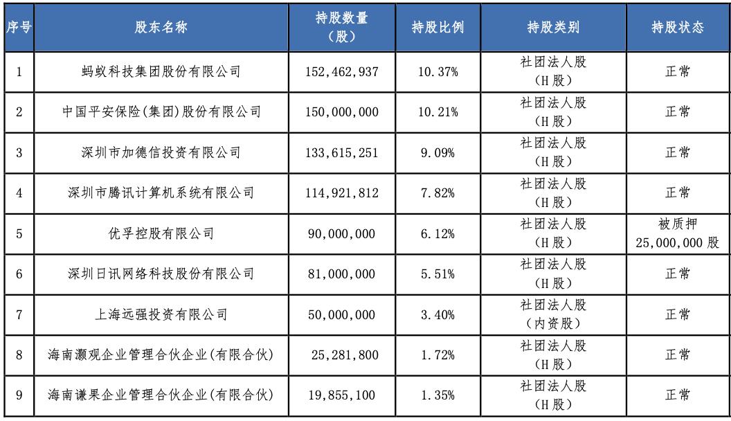 那时候,众安在线主要股东持股情况比较分散,前五名股东分别是蚂蚁、平安、加德信、腾讯和优孚(截至2025年3月末):