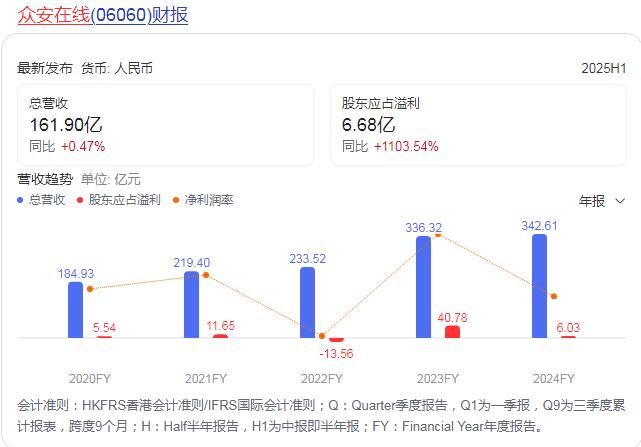 两周之后,众安发布的半年报,业绩确实大幅向好:截至2025年6月30日,众安实现总保费人民币(下同)166.61亿元,同比增长9.3%;报告期内,众安的综合成本率为95.6%,同比改善2.3个百分点,承保利润增长108.9%,同时公司投资收益稳健,且数字银行业务历史性扭亏为盈,公司归母净利润达6.68亿元。