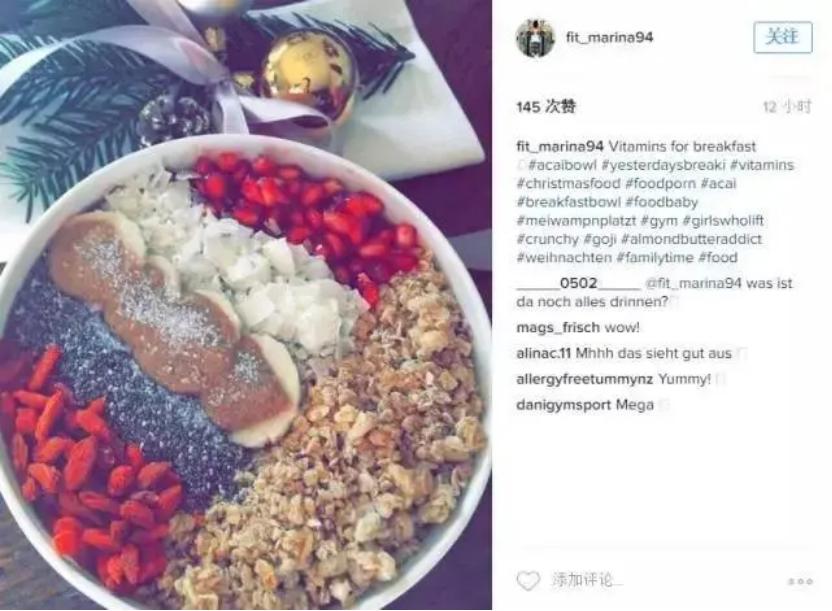 国外掀起过枸杞热潮。图为欧美网友在早餐里放枸杞的搭配。(图/社交媒体截图)