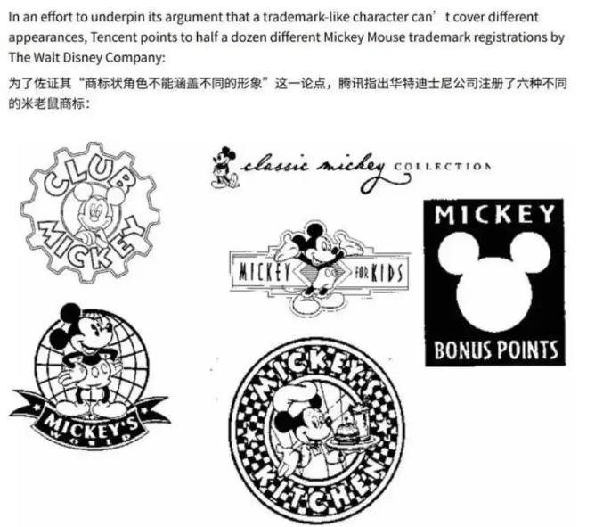 就像迪士尼和米老鼠一样,腾讯表示一个角色在电影里能够被大家认出来,并不意味着TA改变外观、装造后仍能作为商标使用。而迪士尼为不同时期的米老鼠申请注册了多个商标的举措,则让它在摆脱固定的文化环境后仍是“一致”“可识别”的来源表示。