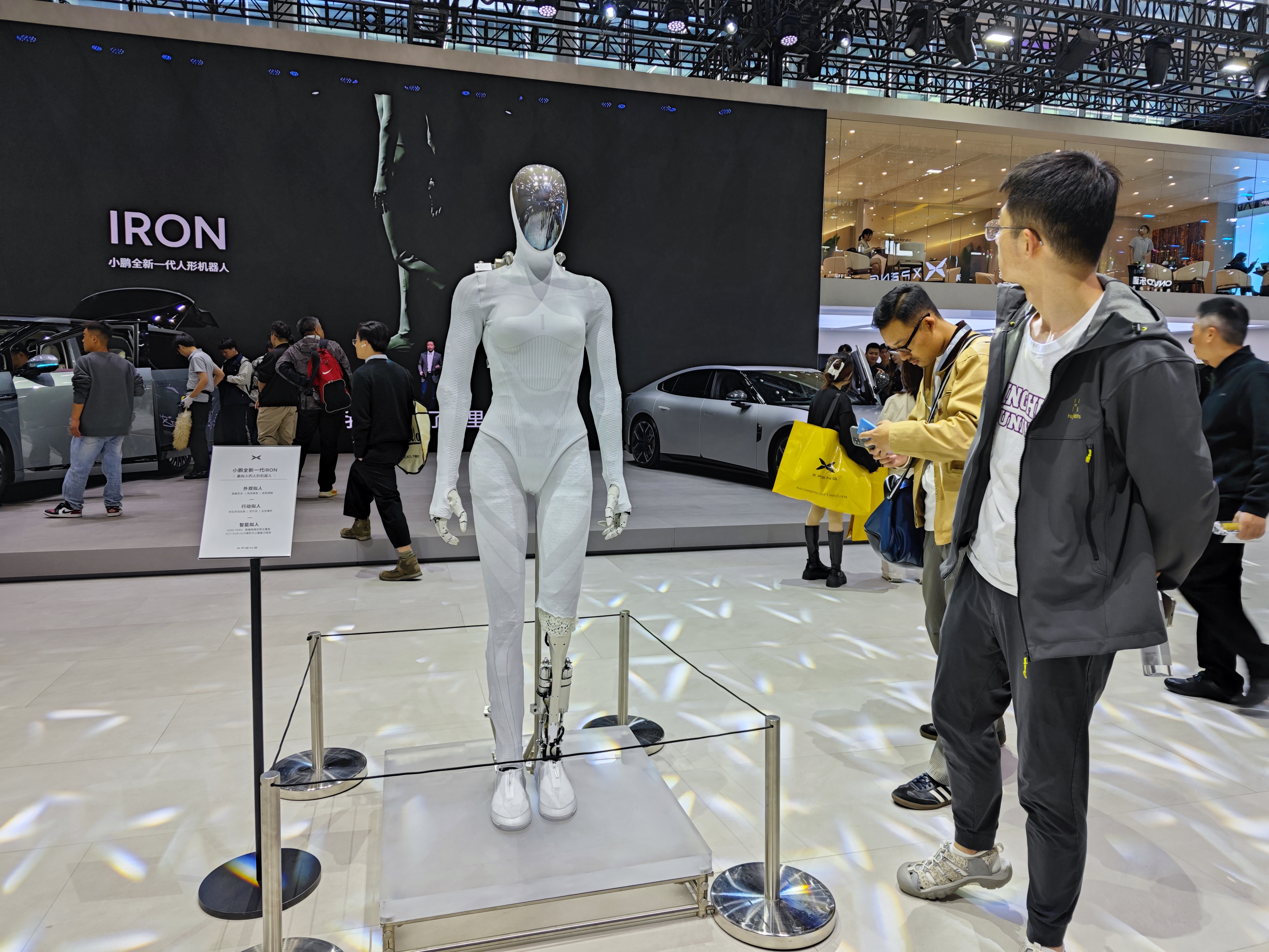 相比之下,特斯拉和小鹏汽车在机器人赛道发展得更快,这两家企业都已经有明确的机器人产品,属于第一梯队。在今年广州车展期间,小鹏汽车展示了“剪腿版”Iron机器人,该机器人拥有独特的“骨骼-肌肉-皮肤”系统、仿人脊椎以及实现22个自由度的灵巧手。