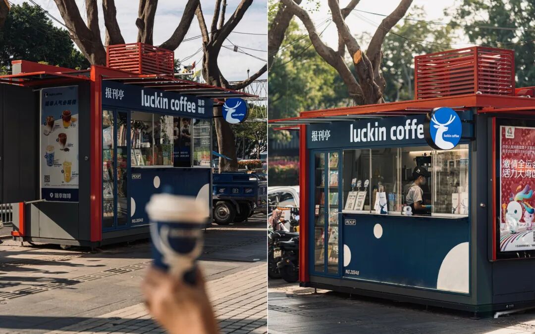 在广州怡发国际附近,一家由报刊亭改造的瑞幸门店成为街头的“吸睛点”。
