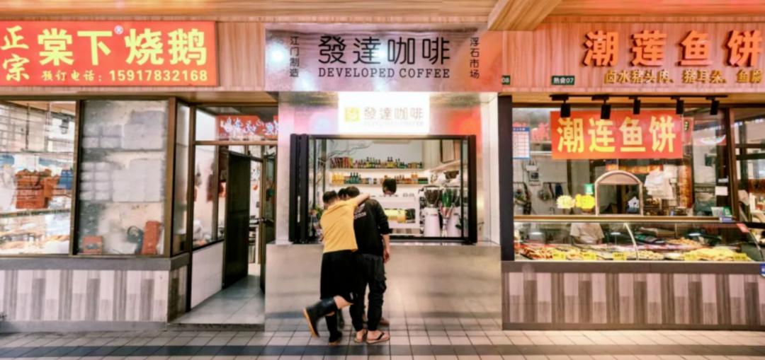成都玉林市场的“饮豆是福·咖啡炒货铺”、江门菜场内的“發逹咖啡”,以及北京三源里市场等陆续出现的连锁门店,让咖啡成了“买菜顺带一杯”的日常选项。