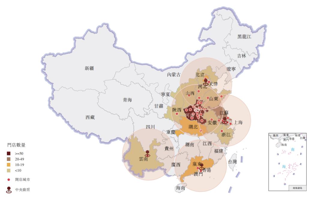 图/巴奴门店地理分布情况,来源/招股书融中财经截图