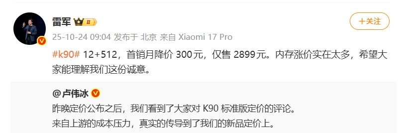 高管频频下场喊话用户理解内存价格上涨带来的压力 | 图片来源:微博