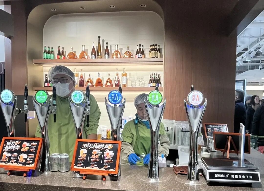在线上购物越来越便利的当下,线下超市对消费者的吸引力更多来自「逛」的感觉和对烟火气的追寻。整体逛下来,我们明显感觉到,小象超市在有意增强「逛」的体验和烟火气。前者是通过提供高品质、差异化的产品和服务来实现,后者则是利用面积更大的熟食区和现打精酿啤酒来强化迷你美食城的生活氛围。